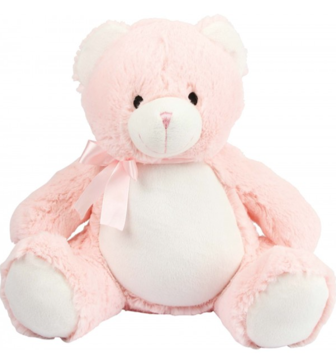 100% polyester pluche. Contrasterende roze neus en poten. Ritsdetails op het lichaam voor directe toegang tot de buik voor borduurwerk. Verwijderbaar binnenvulsel. Voldoet aan de Europese veiligheidsvoorschriften voor speelgoed EN71. Geschikt voor alle leeftijden.