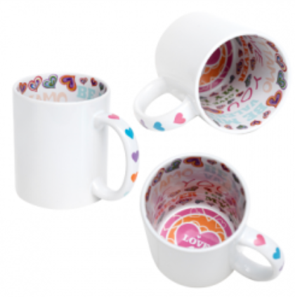 Deze mok met een bedrukte binnenkant die LIEFDE schreeuwt! Maak de buitenkant nog naar wens en je hebt een hartverwarmend Valentijnscadeautje.